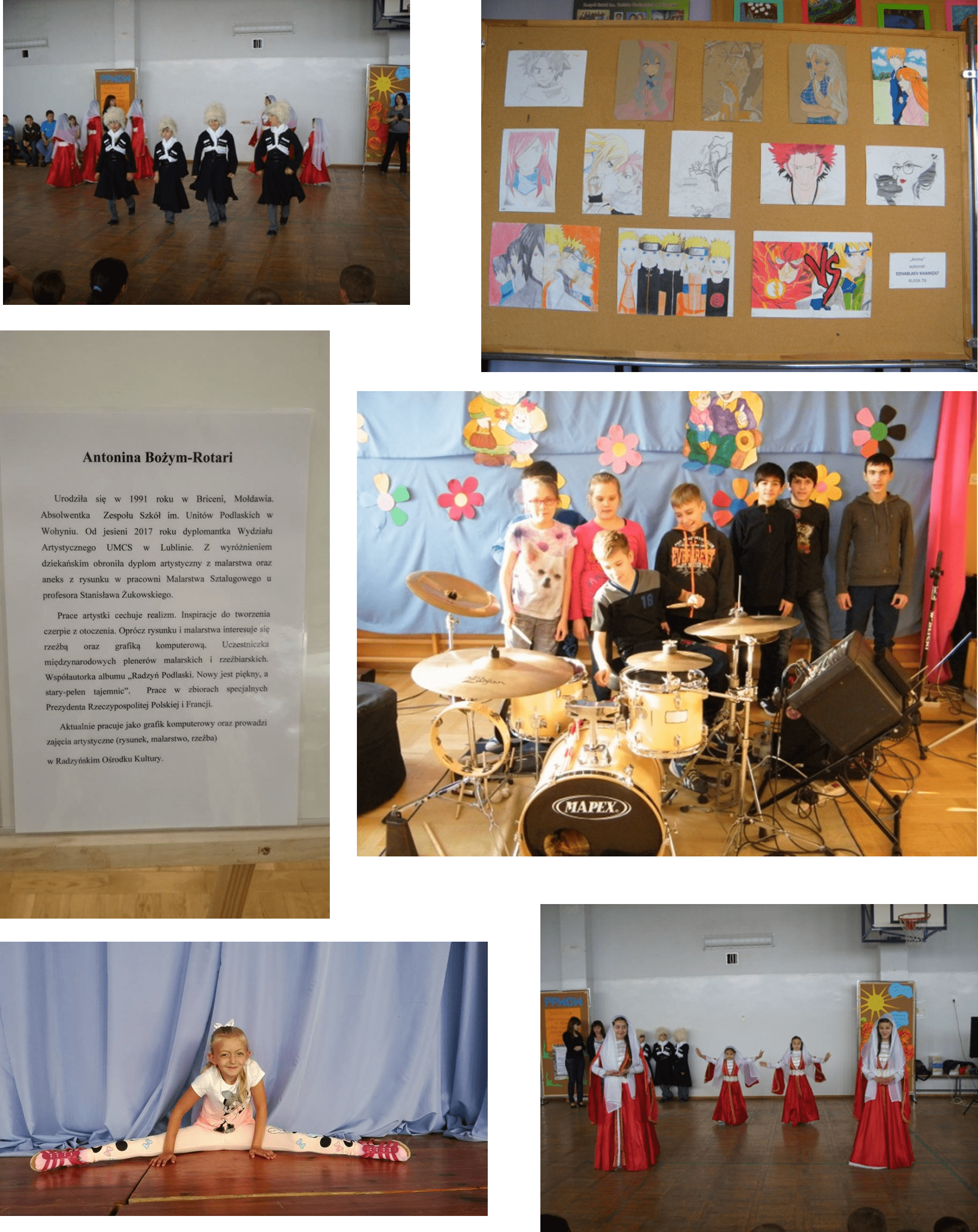 Uno de los primeros proyectos implementados por la escuela en el momento de aceptar alumnos extranjeros fue el proyecto “El multiculturalismo como patrimonio de la comuna de Wohyń”. En él se recordaba la rica historia de la región y el hecho de que en la plaza principal de Wohyń se hablaban 11 lenguas antes de la Segunda Guerra Mundial. Como parte de las tareas del proyecto, actuó el grupo de baile “Estrellas de Chechenia” (los alumnos chechenos eran el grupo más numeroso entre los alumnos extranjeros en aquella época), y también actuó un conjunto vocal y de baile gitano. Se recordó la presencia de judíos, armenios, alemanes y tártaros en Wohyń. Se preparó un cuento en audio que ilustraba esta mezcla de lenguas y naciones. Los alumnos extranjeros también se sumaron a las actividades. Otro evento local fue el “Festival de Cocina del Mundo”. Tanto los padres de los alumnos extranjeros como los representantes de las organizaciones locales polacas participaron en los preparativos. […]Fue conmovedor ver la preparación de platos nacionales por parte de un representante de Ingushetia. Los platos preparados por él, así como los de la cocina georgiana, polaca, judía, ucraniana, chechena, daguestaní y tayika conquistaron los corazones y los estómagos de los visitantes […] (Anónimo).
